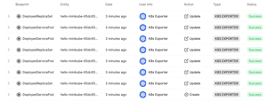 And you can look for the respective audit logs with an indication of the Kubernetes exporter as the source: