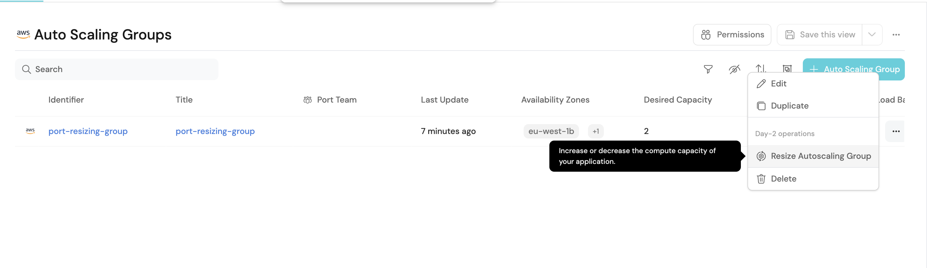 - Trigger the action from Port's self-service page or from the context menu of an Auto Scaling Group entity.